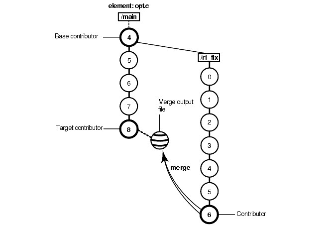 Contributors, which are typically one version from each branch you are merging. (You can merge up to 15 contributors.) You specify which versions are contributors.